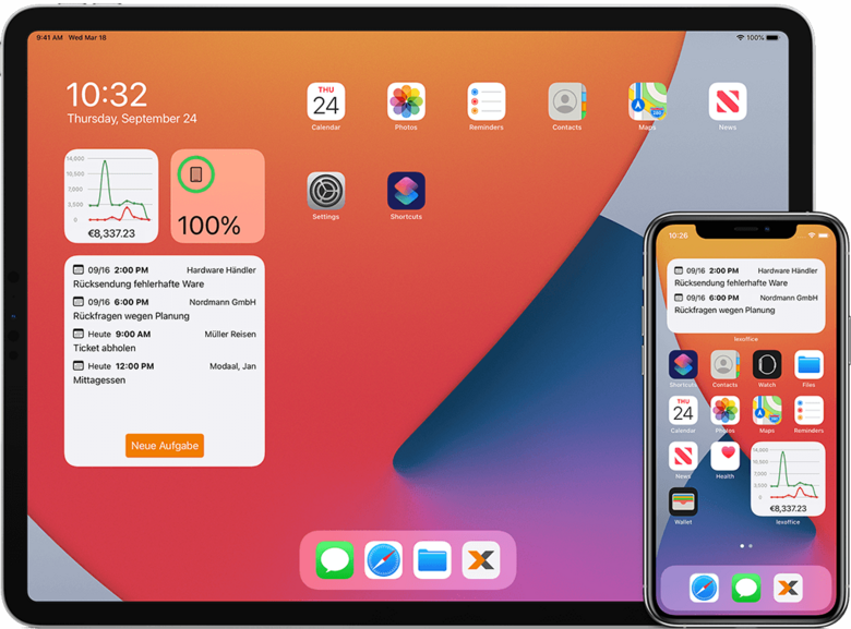 Rufe über das Dashboard deinen Kontostand ab, prüfe Aufgaben oder sieh überfällige Angebote und Rechnungen ein – auch über deine Apple Watch.