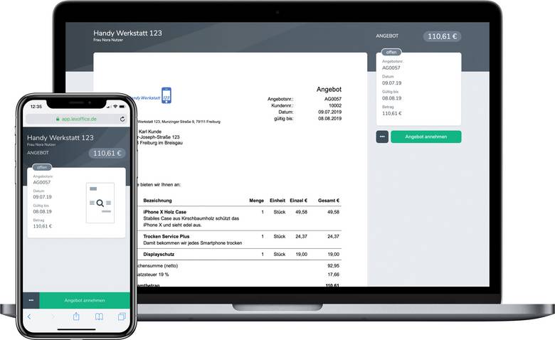 - Kunden können Angebote direkt einsehen, prüfen und annehmen
